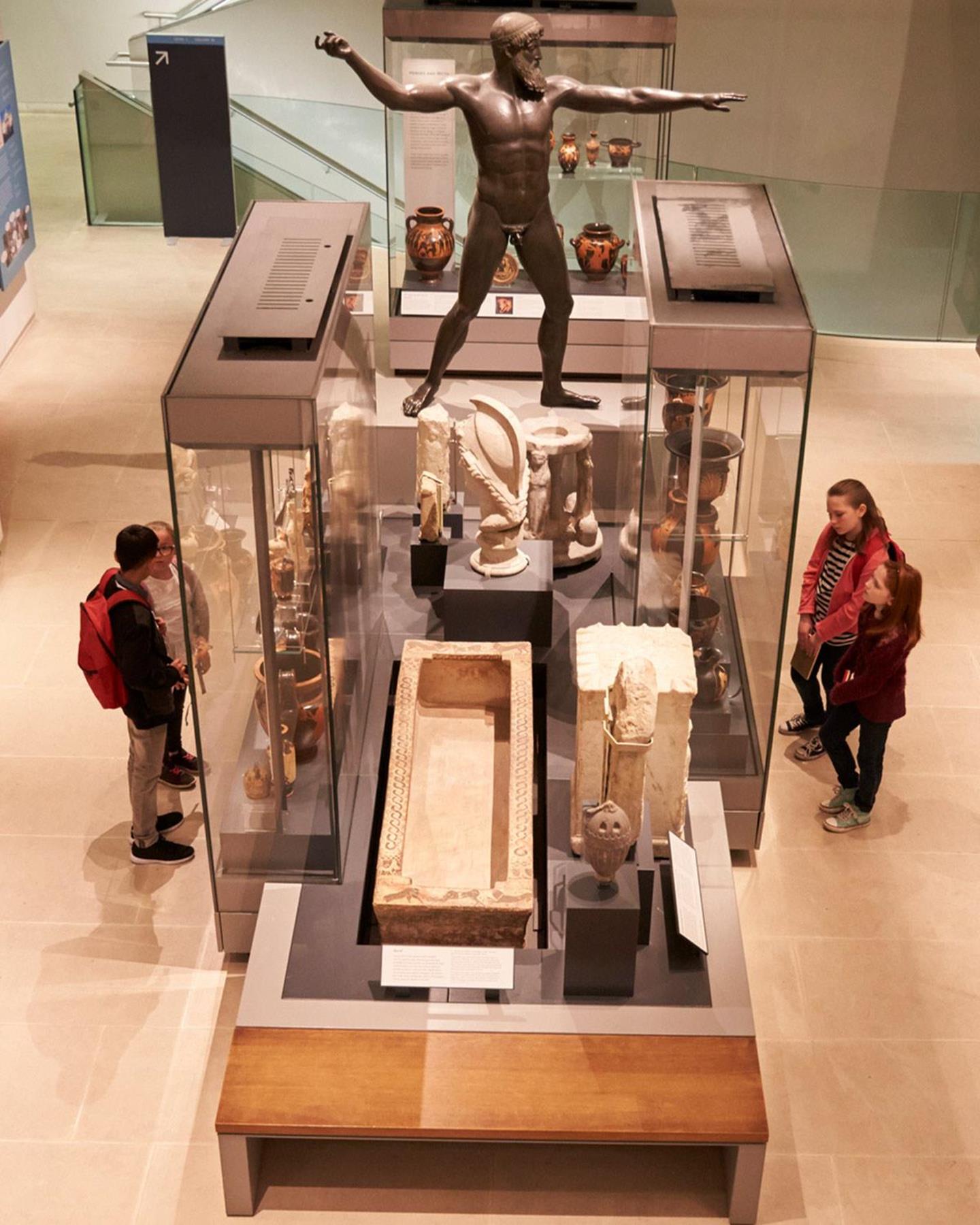 Dauerausstellung mit Fossilien, Werkzeugen und Kunstgegenständen aus der Vergangenheit.